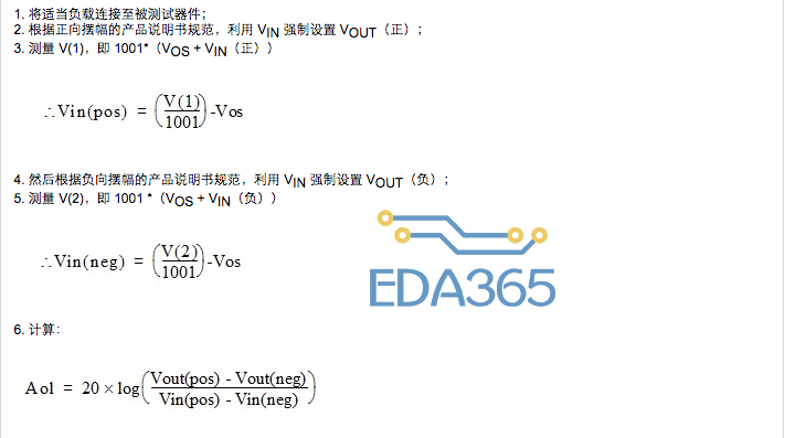 是输出电压与差分输入电压之比。该测量需要测量多个点的输入失调电压并计算 aol。